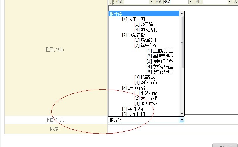 5、上級分類(重點(diǎn)):如下圖,選擇此欄目的父級欄目。默認(rèn)是跟分類。